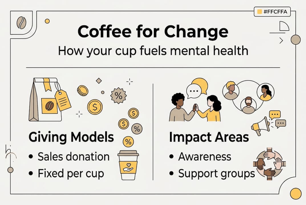 Buying coffee from cause-driven brands means a part of your payment goes directly to mental health programmes or awareness campaigns. Coffee purchases can fund mental health through fixed sales percentages or optional donations at the point of purchase.