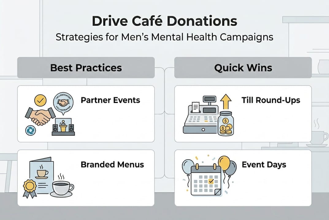 Many UK café owners genuinely want to support men's mental health, but knowing which fundraising approaches actually deliver results is another matter entirely. Running a café is demanding enough without pouring energy into campaigns that fall flat. The good news is that cafés across the UK are already proving that community-led giving works, raising hundreds and even thousands of pounds through smart, repeatable strategies. This guide walks you through what works, what to prepare, and how to keep the momentum going so your café becomes a genuine force for change.