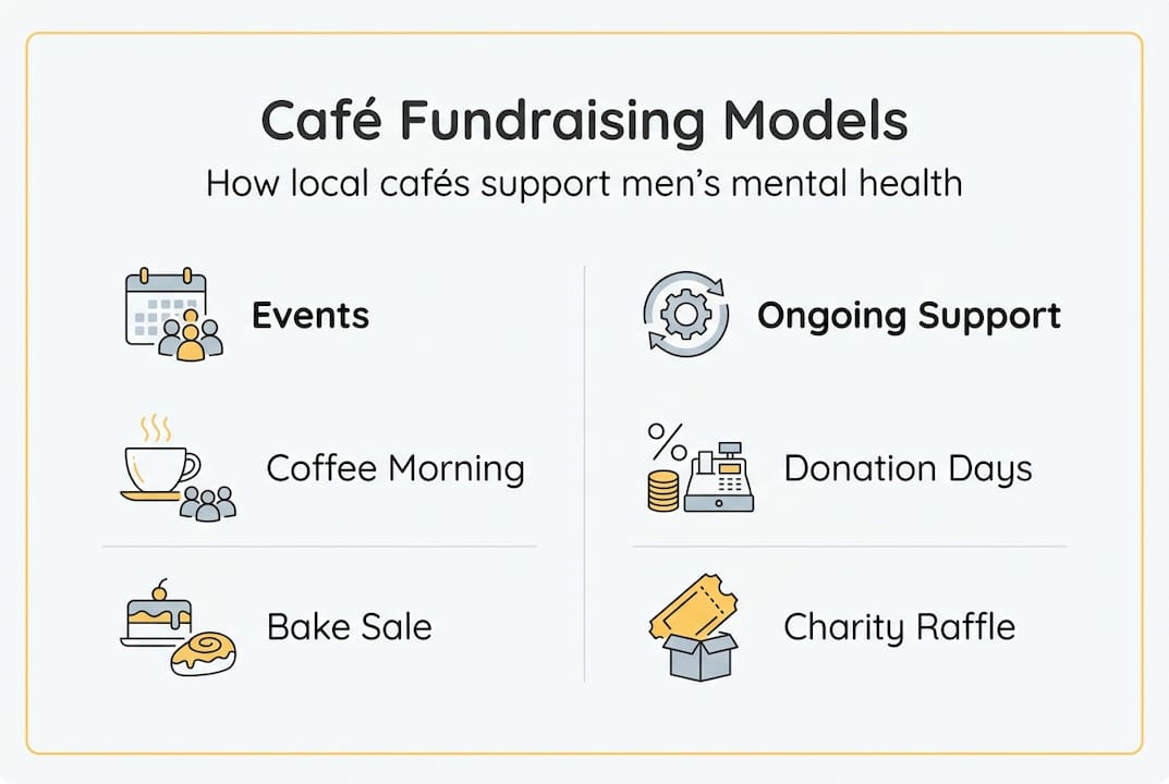| Cafes drive community impact | Local cafes are uniquely positioned to support men's mental health via accessible fundraising events and campaigns. |